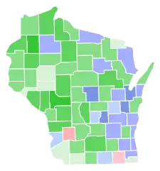 ![]() County results La Follette: 30–40% 40–50% 50–60% 60–70% Schmedeman: 30–40% 40–50% 50–60% Greene: 30–40% 40–50% | |||||||||||||||||||||