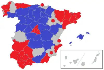 - ↑ Independent, separate Radical lists in Cáceres, Castellón, Ceuta, Málaga (prov.), Ourense, Santander, Tenerife, Las Palmas and Córdoba