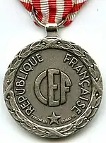 The 1943–1944 Italian campaign medal (French: Médaille commémorative de la campagne d'Italie 1943-1944) was a French commemorative campaign medal awarded to soldiers and sailors who served on Italian soil or Italian waters as part of the "French Expeditionary Corps of Italy" (French: "Corps Expéditionaire Français (CEF)") under the command of general Alphonse Juin.[1]