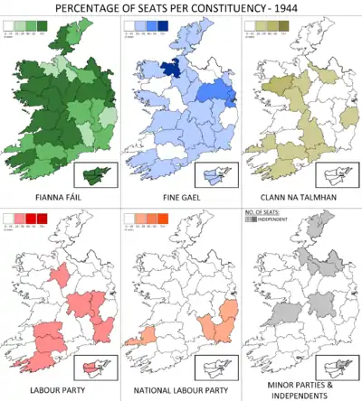 - ↑ "12th Dáil 1944 General Election". ElectionsIreland.org. Archived from the original on 3 June 2009. Retrieved 2 May 2009.