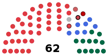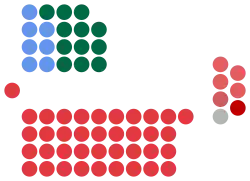 Last election 41 seats, 49.74% 14 seats, 20.21%