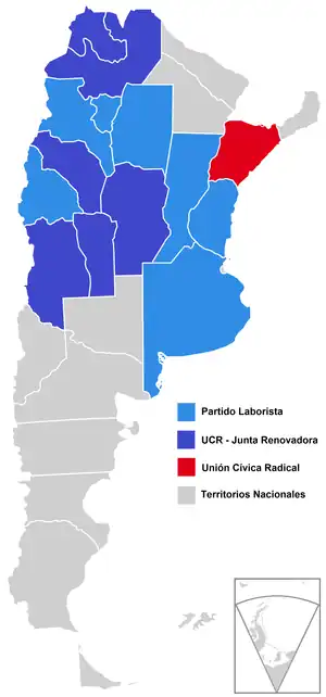 Juan Domingo Perón Hortensio Quijano Labour Party - UCR Renewal Board - Independent Party 1,485,468 53.71 304 80.85