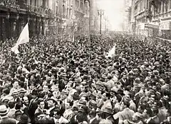 Supporters of the Democratic Union gather on May Avenue in Buenos Aires. This 1945 alliance of conservatives and leftists was tenuously united only by its opposition to Perón.