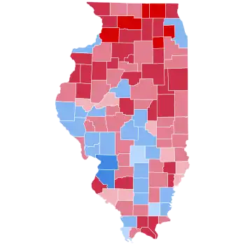 | Sangamon | 29,196 | 46.14% | 33,714 | 53.28% | 363 | 0.57% | -4,518 | -7.14% | 63,273 |
