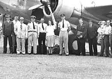 - ↑ The day after the accident, newspapers stated the aircraft reached a height between 100 and 500 feet (30 and 152 m); and the location of the crash was 200 yards (180 m) beyond the end of the strip from which it had taken off.[1]