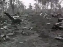 Investigators believed the aircraft captain survived for a short time after the crash. His body was a short distance away from his seat and both were a few metres ahead of the wreckage where they had been thrown after the nose of the aircraft was split open in the impact with a large tree. The seat belt had not broken, but it had been undone.[3] The captain's tunic was pulled up over his head as though to protect his face from the heat of the nearby inferno.[16] Investigators believed he survived the crash and undid his seat belt to drag himself away from the fire.[33] His body was not burnt, but autopsy showed both his legs were broken and he died from a fractured skull.[3][10][34]