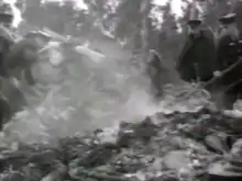 Frank McNamara made a bed of leaves for the survivor and built a fire to help keep him as warm and comfortable as possible. McNamara stayed with the survivor while Inkpen went to summon help. After several hours, ambulance crews arrived and administered first-aid and morphia.[24][25] Rescue workers constructed a stretcher using saplings, bandages and overcoats. They covered the survivor with an overcoat and carried him for two hours to cover about two miles through thickly wooded country to McNamara's utility truck, which then carried him and his rescuers to a waiting ambulance.[3][25]