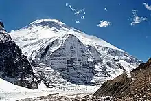 Meantime Lachenal and Rébuffat on their own initiative had moved round the foot of the spur to below Annapurna's north face, to a point they decided gave the best prospects for success.[38] They sent a note back to the main party saying there was a likely route up the side of the north face glacier leading to the plateau above. However, they could see no higher. Fortunately Terray and Herzog had been able to see the plateau from their high point on the northwest spur and could tell the route across the plateau to the top was not technically difficult.[45] Compared with the northwest spur, the north face of Annapurna is at a relatively low angle and does not require rock climbing skills, but the risk of avalanches makes it extremely dangerous.[46] Annapurna may well be the most dangerous 8,000-metre peak – as of 2000 for 38 successful ascents there had been 57 deaths.[47]
