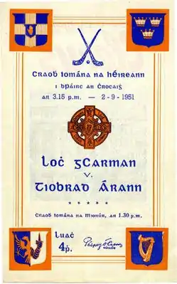 The 1951 All-Ireland Senior Hurling Championship Final was the 64th All-Ireland Final and the culmination of the 1951 All-Ireland Senior Hurling Championship, an inter-county hurling tournament for the top teams in Ireland. The match was held at Croke Park, Dublin, on 2 September 1951, between Wexford and Tipperary. The Leinster champions, Wexford, lost to their Munster opponents, Tipperary, on a score line of 7-7 to 3-9.