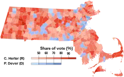 The 1952 Massachusetts gubernatorial election was held on November 4, 1952. Republican Christian Herter defeated Democratic incumbent Paul A. Dever, Socialist Labor candidate Lawrence Gilfedder, Peace Progressive candidate Florence H. Luscomb, and Prohibition candidate Guy S. Williams.