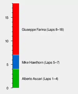 - Car #1: Ascari (9 laps) then Villoresi (8 laps)