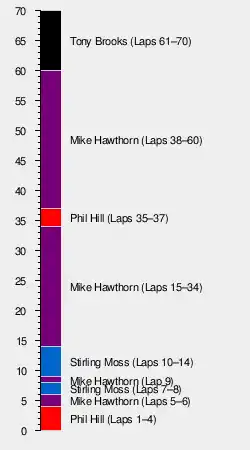 | 5 | 6 | Cooper-Climax | 62 | + 8 Laps | 14 | 2 | |