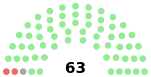 Some Social Credit supporters were so confident of their party's chances that they talked of winning "63 in '63", i.e., all 63 seats in the legislature in the 1963 election. They fell short of this goal, but still had an overwhelming majority, reducing the opposition to only three MLAs in total. Indeed, as a share of the overall seats available, this represented Social Credit's greatest victory in its 36-year reign.