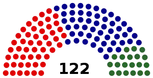 - ↑ The Northern Territory and Australian Capital Territory each had one seat, but members for the territories did not have full voting rights until 1966 and did not count toward government formation.