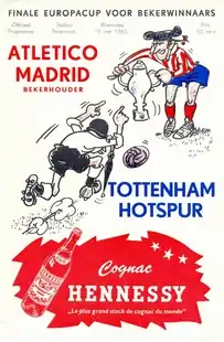 The 1963 European Cup Winners' Cup Final was the final football match of the 1962–63 European Cup Winners' Cup and was the third European Cup Winners' Cup final. It was contested between Tottenham Hotspur of England and the defending champions, Atlético Madrid of Spain, and was held at Feijenoord Stadion in Rotterdam, Netherlands. Tottenham won the match 5–1 thanks to goals by Jimmy Greaves (2), John White and Terry Dyson (2). Tottenham's victory made them the first English team to win a major European trophy, and the second British team after Glentoran who won the Vienna Cup in 1914.[1]