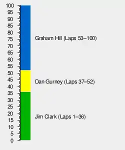 | 6 | 18 | Lotus-BRM | 96 | + 4 laps | 15 | 1 | |