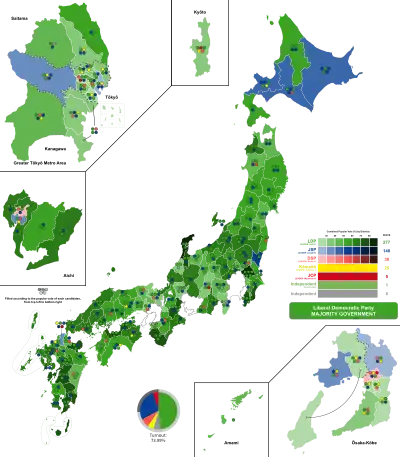 | Liberal Democratic Party | 22,447,838 | 48.80 | 277 | –6 | |