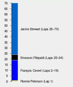 | 1 | 5 | Tyrrell-Ford | 70 | 1:42:13.43 | 6 | 9 | |