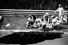 The 1976 German Grand Prix (formally the XXXVIII Großer Preis von Deutschland) was a Formula One motor race held at the Nürburgring on 1 August 1976.[4] It was the scene of reigning world champion Niki Lauda's near-fatal accident, and the last Formula One race to be held on the Nordschleife section of the track. The 14-lap race was the tenth round of the 1976 Formula One season and was won by James Hunt.