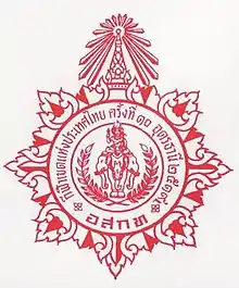 The emblem of 1976 Thailand National Games was a red circle, with a royal crown on top, the emblem of Sports Authority of Thailand on the inside, and surrounded by the text