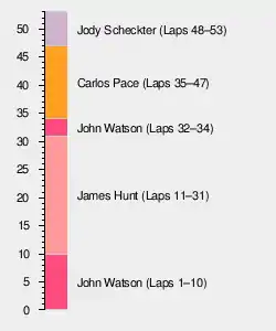 | Ret | 10 | March-Ford | 45 | Electrical | 17 | ||