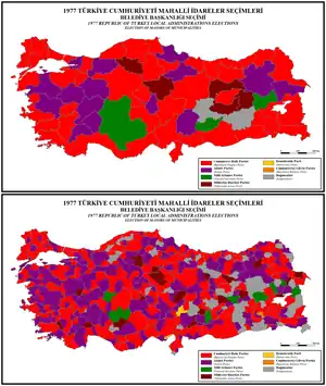 Local elections were held in Turkey on 11 December 1977. In the elections, both the mayors and the local parliaments (Turkish: İl Genel Meclisi) were elected. The figures presented below are the results of the local parliament elections.[1][2]