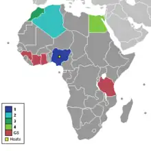 - ↑ Bold indicates champion for that year, Italic indicates host.
