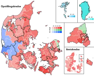 General elections were held in Denmark on 8 December 1981.[1] The Social Democratic Party remained the largest in the Folketing, with 59 of the 179 seats. Voter turnout was 83% in Denmark proper, 55% in the Faroe Islands and 61% in Greenland.[2]
