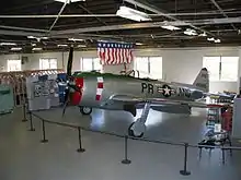 The Puerto Rico Air National Guard came into existence as a result of the efforts led by Colonel Mihiel Gilormini also known as "El Gallo de Yauco", Colonel Alberto A. Nido and Lieutenant Colonel José Antonio Muñiz.[6] On 26 October 1947, several officers were sworn as members of the nascent PRANG.[7] On 23 November 1947, 18 officials and 33 national guardsmen were organized as a unit under Cpt. Nido.[8] The unit was assigned to the Isla Grande Airport and received its first combat aircraft of the Republic P-47 Thunderbolt model and Douglas B-18 Bolo model.[8] The new PRANG was subdivided into four units.[2] The entity was also assigned the 156th Tactical Combat Group, a medical unit.[2] In November 1950, the 198th was activated during the Jayuya Uprising, remaining in action for 11 days, conducting aerial assaults on U.S. citizens in the municipalities of Utuado and Jayuya, as well as conducting reconnaissance and transporting supplies.[9][10]
