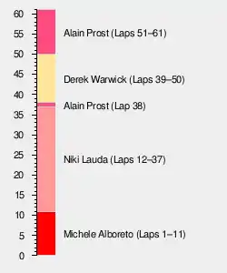| 1 | 7 | McLaren-TAG | M | 61 | 1:42:34.492 | 4 | 9 | |