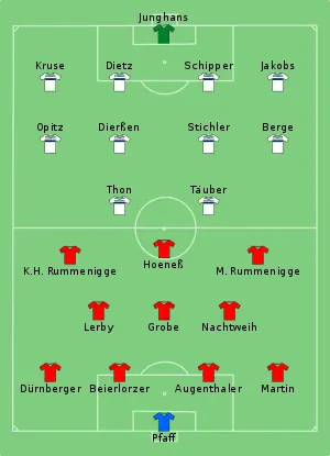 The match was considered the debut of "super-sub" Hans-Jörg Criens,[1] who had played a part in several crucial and important goals. The match was broadcast live on Das Erste by ARD, commentated by Heribert Faßbender.