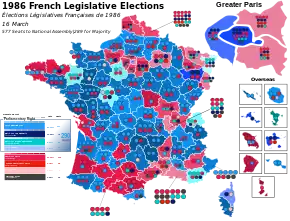 Legislative elections were held in France on 16 March 1986 to elect the eighth National Assembly of the Fifth Republic. Contrary to other legislative elections of the Fifth Republic, the electoral system used was that of party-list proportional representation.[1]