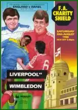 The fixture was a rematch of previous season's FA Cup Final, and Liverpool gained some small revenge for that defeat with a 2–1 win, with both of their goals coming from John Aldridge – the player whose penalty in the FA Cup Final, three months earlier had been saved.[1] However, the man who had saved his penalty – Wimbledon's goalkeeper Dave Beasant – had gone, transferred to Newcastle United in the close season, and his place for this game was taken by Simon Tracey.