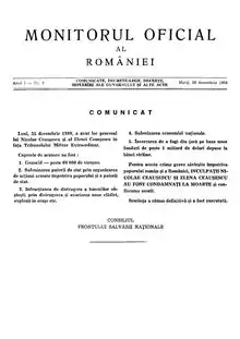 - ↑ "WORLD : Unopposed Ceausescu Reelected". Los Angeles Times. 24 November 1989. Retrieved 14 January 2023.