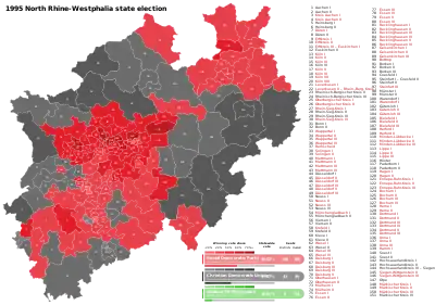 The 1995 North Rhine-Westphalia state election was held on 14 May 1995 to elect the 12th Landtag of North Rhine-Westphalia. The outgoing government was a majority of the Social Democratic Party (SPD), led by Minister-President Johannes Rau.