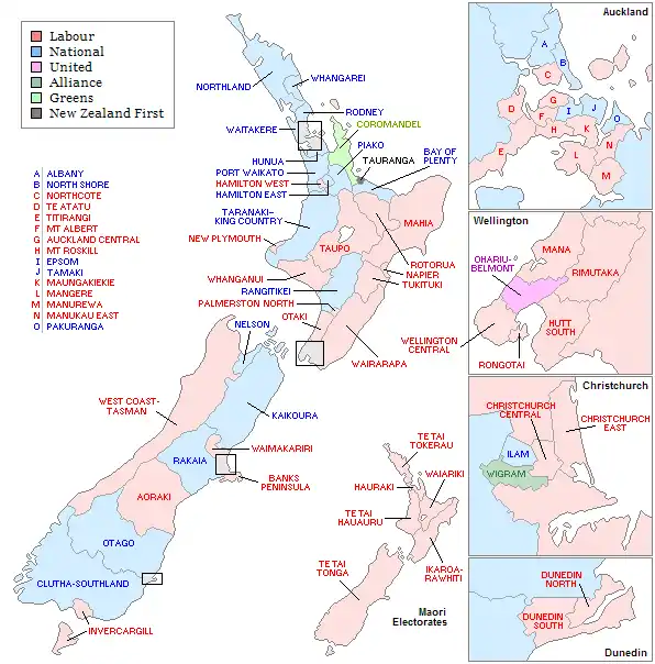 - By Labour: Banks Peninsula, Hamilton West, Maungakiekie, Northcote, Rotorua and Wairarapa were captured from National. Te Tai Hauauru and Te Tai Tokerau were captured from Mauri Pacific. Wellington Central was captured from ACT. Te Tai Tonga was captured from New Zealand First.
