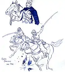 The unit was afterwards deployed in France to defend the rear of the Maginot Line from a German advance from Sedan.[8] With both units weakened by losses in Belgium it was combined with the 5th Light Cavalry Division and assigned to XXI Corps.[9] The unit fought alongside the 3rd Spahi Brigade of African cavalry to defend the Ourthe River.[10] With other units pushed back the 1st Cavalry Brigade covered the French withdrawal south to Chagny.[11] On 14 May the unit attempted to defend Vendresse against the 1st Panzer Division, with the 5th Light Cavalry Division.[12] The units, many of whom were horse-mounted, held up the German armour for the entire day, before withdrawing, when ordered, at 5 p.m.[12][13] A horse troop from the 1st Cavalry Brigade took part in the defence of Chagny against the 1st and 2nd Panzer Regiments and suffered heavy losses, withdrawing to Hill 250.[14]