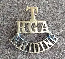 Brass shoulder title of the North Riding RGA, worn from 1908