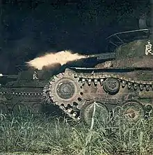 ![]() Type 97 Chi-Ha tanks of the IJA 1st Tank Division during a night training exercise, 1943 | |