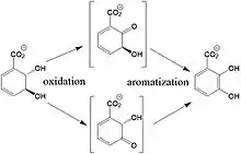 - ↑ Young IG, Gibson F (May 1969). "Regulation of the enzymes involved in the biosynthesis of 2,3-dihydroxybenzoic acid in Aerobacter aerogenes and Escherichia coli". Biochimica et Biophysica Acta (BBA) - General Subjects. 177 (3): 401–11. doi:10.1016/0304-4165(69)90302-X. PMID 4306838.