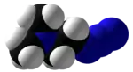 During their inquiry into finding alternative hypergolic fuel, a joint effort by the Aviation and Missile Research, Development, and Engineering Center (AMRDEC), the U.S. Army Research Laboratory (ARL), and the National Aeronautics and Space Administration (NASA) determined that DMAZ could perform competitively with Aerozine-50 and is less toxic than hydrazine-based fuels.[4][5] However, DMAZ-inhibited red fuming nitric acid (IRFNA) systems have demonstrated longer ignition delays than monomethylhydrazine-IRFNA systems. In an effort to address this issue, researchers synthesized the related compounds 2-azidoethanamines – 2-azido-N-methylethanamine (MMAZ) and 2-azido-N-cyclopropylethanamine (CPAZ) in hopes of enhancing the reactivity of DMAZ's amine nitrogen to reduce ignition delays. MMAZ is not hypergolic, while CPAZ is hypergolic.[6]