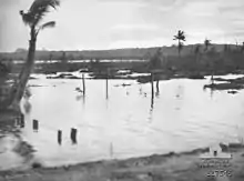 After being subjected to heavy aerial and artillery bombardment, the following day the battalion's commanding officer, Arthur Boyes, handed over command to Lieutenant Colonel Roland Oakes,[21] formerly the second in command of the 2/19th Battalion. Boyes was called away to help organise the island's rear area defence and was subsequently given command of 'X' Battalion, a composite unit made up of reinforcements that had been separated from their units. Shortly after taking up this appointment, however, Boyes was killed along with a number of his men when the battalion was ambushed while attempting to fill a gap in the lines that had resulted from a Japanese breakthrough.[22]