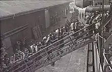 ![]() 2/28th troops board a troopship in Cairns, August 1943, prior to the landing around Lae | |