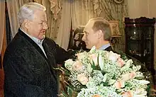 On New Year's Eve 1999, Yeltsin announced that he would be resigning early in the belief that “Russia should enter the new millennium with new politicians, new faces, new people, who are intelligent, strong and energetic, while we, those who have been in power for many years, must leave.”[3] In accordance with the constitution, Putin became acting president.