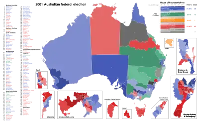 ![]() Results by division for the House of Representatives, shaded by winning party's margin of victory. | ||||||||||||||||||||||||||||||||||||||||