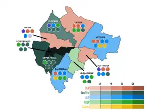 ![]() 2001 Belfast City Council Election Results, shaded by First Preference Votes. | |||||||||||||||||||||||||||||||||||||||||||||||||||||