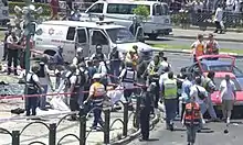 - ↑ Goldenberg, Suzanne (18 May 2001). "War jets attack West Bank after mall bomb carnage". The Guardian. Retrieved 8 December 2017.