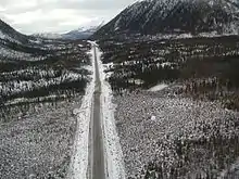 On October 23, 2002, there was a magnitude 6.7 earthquake located on the Denali fault. The event's aftershocks revealed a 45 km (28 mi) long fault rupture along the Denali fault, but aerial reconnaissance could not locate a surface rupture. This rupture extends to 10 km (6.2 mi) west of the mainshock's epicenter. Minor avalanches of snow and rockfalls were plentiful in the area as a result. Because of its location close to the November 3 event and the fact that it preceded it by only 11 days, this earthquake is regarded as a foreshock.[8] The calculated stress transfer from this foreshock indicates that it brought the Denali fault closer to failure at the location of the mainshock epicenter.[9]