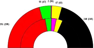 ![]() The left side shows constituency winners of the election by their party colours. The right side shows party list winners of the election for the additional members by their party colours. | ||||||||||||||||||||||||||||||||||||||||||||||||||||||||||||||||||||