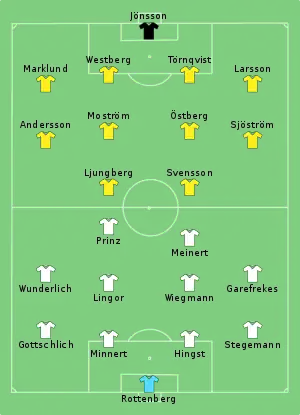 - 1 2 "Tactical Line-up – Germany-Sweden" (PDF). FIFA.com. Fédération Internationale de Football Association. pp. 70, 86. Archived from the original (PDF) on December 26, 2011. Retrieved January 5, 2018.